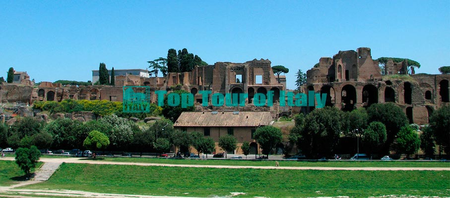 - stop at Circus Maximus, the "Chariot Races stadium", overlooking the Palatine Hill, where the first house of Rome and the palaces of the emperors are located;